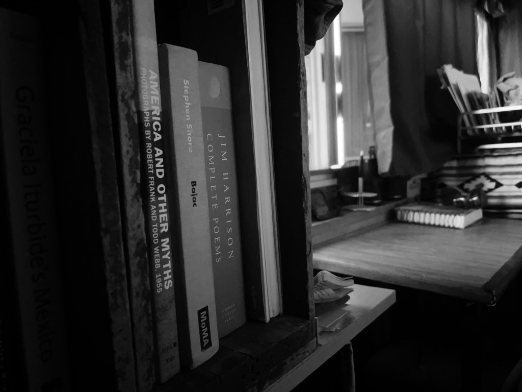1. It’s nice to see you’ve got Jim’s big book of pomes. I keep my copy on the bed stand. A couple nice photo books too. What more does a guy need? Plus, a little ‘slice of life’ is always nice.